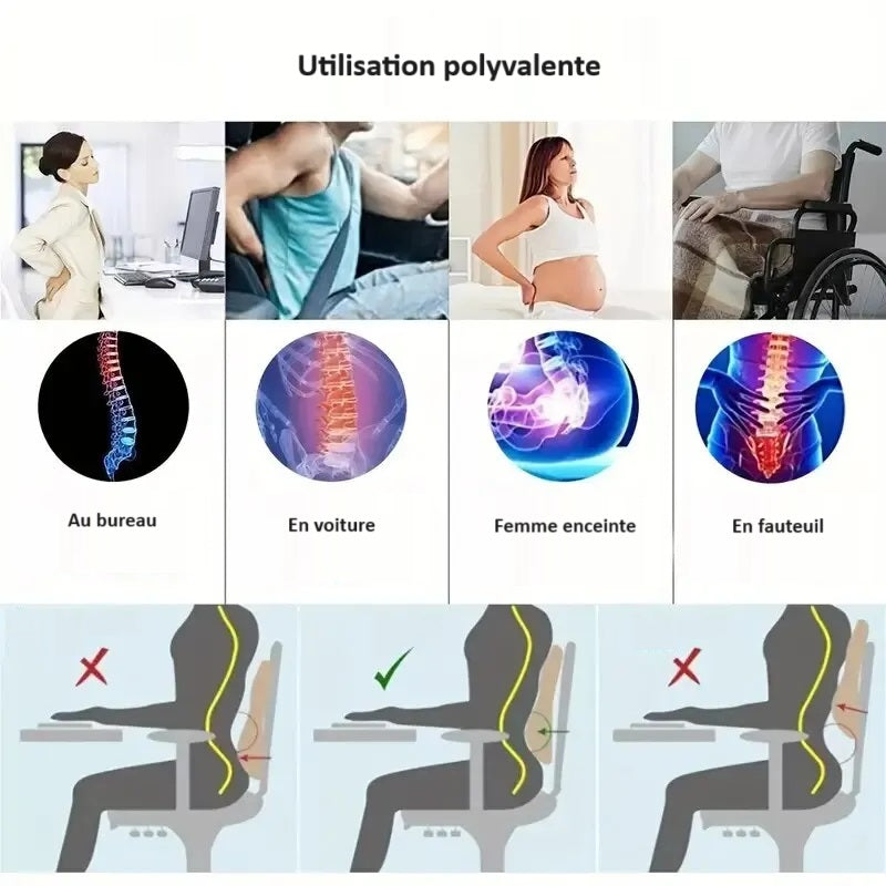 Adaptable à tout type de situation, ce coussin orthopédique vous offre un confort instantané dans divers contextes, que ce soit pour vos trajets quotidiens ou votre travail.